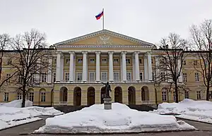 - (en) Cet article est partiellement ou en totalité issu de l’article de Wikipédia en anglais intitulé « Smolny Institute » (voir la liste des auteurs).