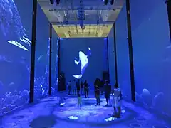 Le , l’exposition a ouvert ses portes. Menée en collaboration avec l’association internationale WildAid[22] ce sont 11 œuvres uniques créées spécifiquement pour le Musée par 10 artistes d’avant-garde chinois[23]. Chacune d’elles explore la relation complexe entre les hommes et les squales et par extension, son rapport à la nature[24]. Dans toutes les salles jusque sur la terrasse panoramique, ces installations monumentales, sculptures, peintures, interpellent le visiteur et l’invitent à dépasser certains préjugés. “On Sharks & Humanity“ souligne à travers l’art le rôle indispensable des requins dans l’écosystèmes marins et l’impact négatif de la surpêche[25].
