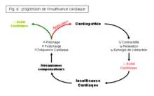Les mécanismes compensateurs contribuent donc à soutenir le débit cardiaque (augmentation de la fréquence cardiaque, de la contractilité et de la précharge) et la perfusion tissulaire (augmentation de la postcharge) lors d’une baisse de la performance cardiaque (cardiopathie) et sont donc à court terme bénéfiques. Cependant, leur activation augmente la dépense énergétique du myocarde et ces mécanismes s’avèrent rapidement délétères à long terme, en contribuant à la progression et l’aggravation de la cardiopathie. La performance cardiaque chute alors de plus en plus, et les mécanismes compensateurs s’amplifient progressivement.