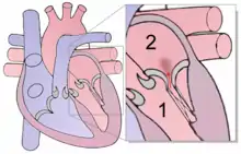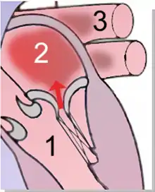 1 Ventricule gauche — 2 Atrium gauche — 3 Veine pulmonaire
