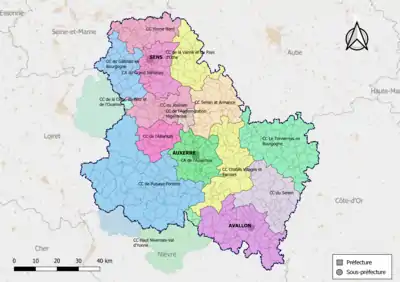 | CC de l'Aillantais | 248900524 | 13 | 10 354 (2019[12]) | 265,0 | 39 | Montholon | Mahfoud Aomar | ||
