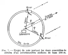 Dans les années 1870, sur la même ligne que Fizeau, Édouard Stephan publie un premier ouvrage sur le sujet et émet l'hypothèse qu'une étoile peut être localisée plus précisément en utilisant un type d'interférométrie se rapportant à l'interférométrie d'intensité[2],[3]. En effet, il cherche alors à mesurer le diamètre d'une étoile en utilisant deux lignes de données obtenues par deux trous espacés de 65 centimètres sur le télescope de Foucault (80cm) de l'observatoire de Marseille[4].