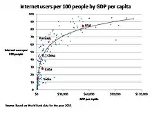 L'accès à Internet à Cuba est caractérisé par un faible taux de connexion, un débit limité, un coût élevé et une censure active[2]. Internet est introduit à la fin des années 1990, mais en raison du manque de financement, des restrictions gouvernementales et de l'embargo des États-Unis contre Cuba, son usage évolue peu. À partir de 2007, la situation commence à s'améliorer, avec l'ouverture des premiers cyber-café[3]. En 2014, les performances technologiques et le taux de pénétration de 30 pour cent[4] étaient en augmentation.