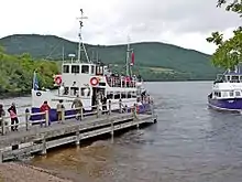 Bateau d'excursions au débarcadère du château d'Urquhart.
