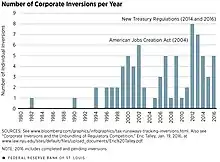 Ainsi Medtronic, Mylan, Actavis, Chiquita Brands International, Applied Materials, AbbVie et Burger King, pour ne citer que ceux-là, ont eu recours ou ont voulu recourir à l'inversion. En 2014, l'administration fiscale des États-Unis a changé sa règlementation fiscale, réduisant l'intérêt de l'inversion. À la suite de cela, des acquisitions ont été annulées, dont celles qui impliquaient par exemple Chiquita Brands International ou encore Pfizer.