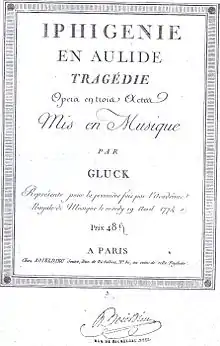 - Iphigénie en Aulide, opéra, musique de Christoph Willibald Gluck, livret de Louis Gand Le Blanc du Roullet, 1774.