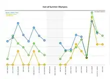 - (en) Cet article est partiellement ou en totalité issu de l’article de Wikipédia en anglais intitulé « Iran at the Olympics » (voir la liste des auteurs).