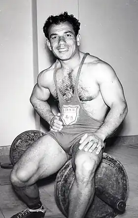 Mahmoud Namdjou vice-champion olympique en haltérophilie, en moins de 56 kg.