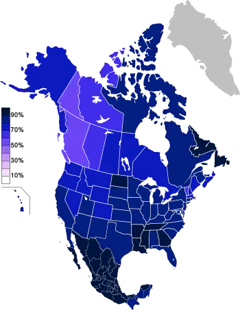 D'après Gallup, la part des américains se déclarant sans religion passe de 2 % en 1960, à 7 % en 1980, 8 % en 2000, 14 % en 2010 et 16 % en 2014[5]:
