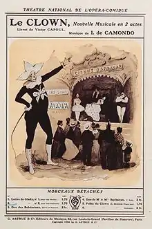 Certaines de ses chansons et pièces instrumentales ont été jouées en 1904 dans la salle Érard[7]. Son œuvre la plus connue est l’opéra Le Clown sur un livret de Victor Capoul, dont la première a eu lieu en 1906 avec la soprano américaine Geraldine Farrar au Nouveau Théâtre[7]. Cet opéra a connu d’autres représentations en 1908, ainsi qu’à l’Opéra-Comique et à Marseille en 1909[7], puis en 1910 à Vichy[7], en 1911 à Anvers et en 1912 à Cologne[9].