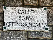 - La municipalité de la Corogne nomma d’après son nom (ou l’un de ses avatars) une rue de la ville, la calle Isabel López Gandalia.