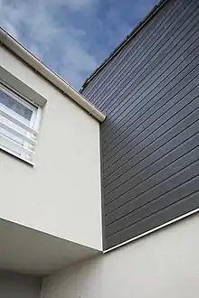 Généralement, dans les murs en contact avec l'extérieur, un isolant est placé entre une couche intérieure qui peut être porteuse et une couche extérieure qui sert de parement. C'est une aberration technologique que ne manqueront pas de souligner certains ingénieurs[3]: les deux couches de matériaux subissent des dilatations thermiques différentes, ce qui mène éventuellement à la fissuration des parois.