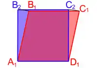 Cas du quadrilatère — L'unique quadrilatère de périmètre p et d'aire maximale pour ce périmètre est le carré de côté p/4.