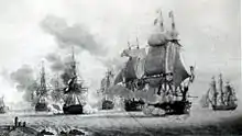 En 1809, l'Empereur Napoléon Ier développe un plan visant à réunir les escadres de Brest, Lorient et Aix, commandées respectivement par Willaumez, Troude et Lhermitte pour aller ravitailler les Antilles[2]. Dans la nuit du 20 au , l'escadre de Brest sort de la rade et fait route au sud ; elle arrive devant Lorient et chasse la croisière anglaise de Beresford[3]. Le manque de vent empêche la sortie de l'escadre de Lorient et Willaumez reprend sa route le 22 à la tombée de la nuit[4]. Le 23 au matin, les frégates Italienne, Calypso et Cybèle, sous les ordres de Jurien de La Gravière, sortent de Lorient et file au sud vers Rochefort pour rattraper l'escadre de Brest. Le , elles rencontrent la division anglaise de Stopford composée des vaisseaux HMS Caesar, Defiance et Donegal (en) et de deux frégates[5]. Dans le combat qui s'ensuit, devant les Sables-d'Olonne, les frégates françaises repoussent les Anglais et endommagent gravement le HMS Defiance[5]. La Cybèle s'échoue sur des rochers tandis que l'Italienne et la Calypso sont si endommagées qu'elles sont vendues[5].