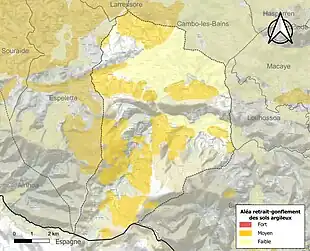 Les communes les plus proches[Note 2] sont[9] : Cambo-les-Bains (3,2 km), Espelette (3,6 km), Louhossoa (4,5 km), Halsou (5,2 km), Larressore (5,3 km), Souraïde (5,8 km), Jatxou (6,9 km), Macaye (7,2 km), et Bidarray (10 km).