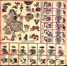 Dans le calendrier aztèque, il préside la treizaine 1 Calli (Maison) du jour 1 Lézard à 13 Vautour. La treizaine précédente était gouvernée par Patecatl et la suivante par Tlazolteotl.