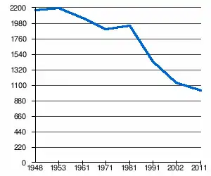 | 1991 | 1 439 | 46,14 % | 27,44 % | 10,42 % | 11,60 % | 0,76 % | 0,13 % | 0,0 % |