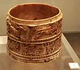 - Le domaine social regroupe les objets liés aux loisirs et activités culturelles. Pour les loisirs, on trouvait de petits pions de jeux de stratégie en ivoire[10]. Les enfants, du moins ceux des familles les plus aisées, pouvaient bénéficier de poupées articulées en ivoire.