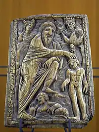 Les pyxides d'ivoire sont détournées à des fins religieuses et servent désormais à contenir l'hostie ou d'autres accessoires de la liturgie. Ces boîtes s'ornent de scènes chrétiennes de la vie du Christ par exemple sur les pyxides à scènes néo-testamentaires de l'orient byzantin où l'iconographie est conforme aux modèles des peintures paléochrétiennes des catacombes romaines[14]. Ceci montre que l'empire byzantin est désormais le "dépositaire officiel" de la tradition antique et dispose d'un répertoire iconographique déjà en partie constitué par de nombreuses importations d'objets. Les légendes mythologiques et "païennes" sont peu à peu reléguées au rôle d'ornementation élégante, vidée de sa signification. Les ivoires deviennent alors un véhicule des nouvelles formules stylistiques.