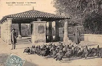 Formes anciennes du nom : Le village apparaît dans des documents du XIIIe siècle sous le nom d' Hison, puis Yson au XIVe siècle[47]. Il est ensuite identifié sous le nom d' Ison sur la carte de Cassini, représentant la France entre 1756 et 1789[8], puis mentionné sous le nom d'Izon en 1793 et 1801[48],[Note 5].