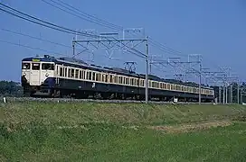 Cependant, à l'époque, l'extension des tronçons électrifiés des ligne Sanyō et la ligne principale Shin-Etsu était prévue, et il aurait fallut modifier un grand nombre de trains, ce qui serait coûteux, et fut jugé être une mauvaise idée. L'introduction d'un modèle à 4 portes, a sièges transversaux (avec strapontins sur le zone des portes), basée sur la série 101 a également été envisagée, et des plans ont également été créés à cet effet. Mais il a été déterminé que cela n'offrirait pas une excellente habitabilité en tant que voiture.