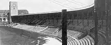 Torben Grut, par ses plans, fait construire un nouveau stade spécialement pour les épreuves d'athlétisme entre les années 1910 et 1911[21] : le Stade olympique de Stockholm. Sa capacité est de 35 000 places. La piste d'athlétisme est l'œuvre de Charles Perry, le premier grand spécialiste mondial. Le stade a accueilli certaines compétitions d'athlétisme, la gymnastique et les cérémonies d'ouverture et de clôture. Les épreuves d'athlétisme ont eu lieu du 6 au 15 juillet, celle de gymnastique aux mêmes dates. La longueur des pistes pour les courses à pied sont longues de 383 mètres et le terrain de gazon mesure 67,5 sur 148 mètres et celui du football 65 sur 104 mètres[22]. Le coût total du stade revient à 1 190 000 francs. Le Stade devait alors rappeler ceux de l'Antiquité avec une forme d'un aimant en fer à cheval[21].