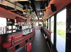 - Un comptoir de café avec un dessus en marbre artificiel est installé sur le côté gauche du véhicule.