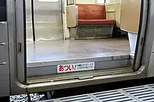 - Dispositif d'interdiction de passage en gare d'arrêt : installé sur les véhicules exploitant la ligne Senzan et la ligne Ban'etsu Ouest. L'appareil est installé à droite du conducteur, comme sur la série 205 de la ligne Senseki appartenant à la succursale Sendai Vehicle Center Miyagino. Affiche si le train s'arrête ou passe à l'approche d'une gare[Note 8]. La détection de l'emplacement du train utilise un capteur fixé au bogie pour compter la distance parcourue et dispose d'une fonction intégrée pour corriger manuellement les erreurs de détection de distance en cas de marche au ralenti du train.