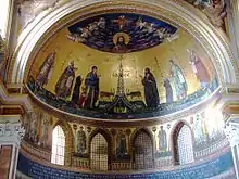 Comparé au cycle de mosaïque analogue, et peut-être légèrement antérieur, de Cavallini à Sainte-Marie-du-Trastevere, Torriti compose ici les histoires selon un nouvel ordre, plaçant la scène dramatique du Dormitio Virginis au centre, et donc visuellement en relation directe avec le Couronnement du dôme.