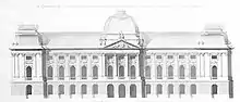 Enfin reçu à l’Académie royale d'architecture en 1755, Jacques-François Blondel deviendra le professeur de l’École de l’Académie en 1762, succédant à l'architecte Louis-Adam Loriot. Cette reconnaissance institutionnelle lui ouvre les portes de la commande publique : aménagements à Metz des abords de la cathédrale, création d'un portail (transformé en 1905 par Paul Tornow) et de places publiques jouxtant l'édifice dont la place d'Armes (hôtel de ville)[2] (1761), plans d’aménagement de la ville de Strasbourg (1767).