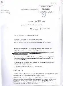 Mise à la retraite d'office par le garde des Sceaux (1987)