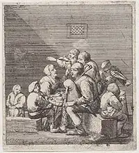 Il s’intéresse aux paysans de son temps mis en scène dans des lieux clos tels que des cabarets et des auberges. Les gravures mettent les personnages au centre de la composition. Ils sont le plus souvent représentés en groupe, assis, mangeant, buvant, rigolant, fumant ou bien jouant de la musique.