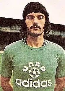 Jacques Santini en 1976 avec l'AS Saint-Étienne. | ||