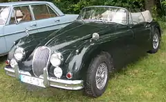 La Jaguar XK150 est une voiture produite par la marque automobile Jaguar. En 1957, presque 10 ans après le lancement de l’aînée de la famille, la 120, et après la 140 et sa direction à crémaillère, Jaguar dévoile la XK150 qui est une voiture dont la ligne est radicalement différente de ses devancières. Le profil de la voiture est adouci et le pare-brise est maintenant en un seul plan bombé, comme la vitre arrière du coupé.