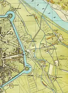 - (de) Cet article est partiellement ou en totalité issu de l’article de Wikipédia en allemand intitulé « Jakobervorstadt » (voir la liste des auteurs).