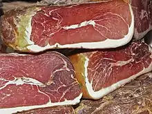 Les pièces de viandes autorisées à la transformation doivent être fraîches et provenir de l'Union européenne[5], c'est-à-dire que les animaux doivent être nés, élevés et abattus dans l'UE[6]. Chaque pièce doit peser au minimum 8,5 kg à l'état frais.