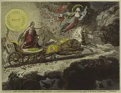 - Britannia entre Charybde et Scylla, une image dans laquelle Pitt qui a si souvent été la cible de Gillray, figure sous un jour favorable ;