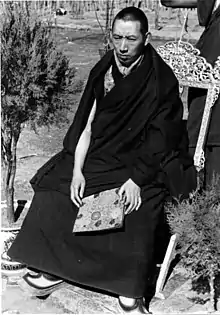 - Xiong Ji, Radreng the regent, op. cit. : « In the winter of 1939, the kashag government reported the discovery of the incarnation of the Thirteenth Dalai Lama to the central government. In February 1940 the Kuomintang government dispatched a delegation headed by Wu Zhongxin to sponsor the performance of formalities for the confirmation of the Fourteenth Dalai Lama and hold a title-granting ceremony for Radreng Rinpoche, and gave gifts as well. »
