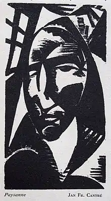 Paysanne, xylographie de Jan Frans Cantre (1886-1931).