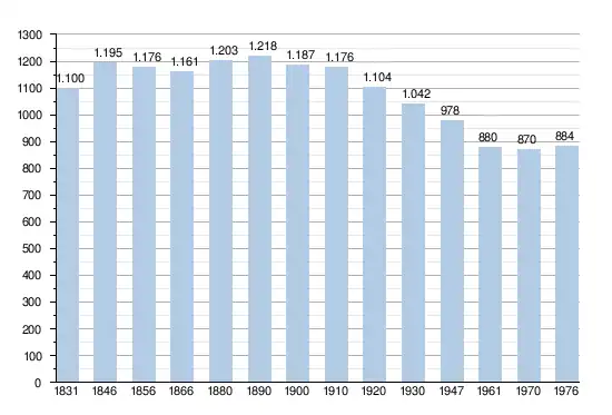 - Sources:INS, Rem:1831 jusqu'en 1970=recensements, 1976= nombre d'habitants au 31 décembre