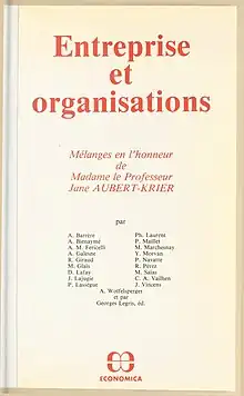 - Georges Legris (dir.), Entreprise et organisations : mélanges en l'honneur de Madame le Professeur Jane Aubert-Krier, Economica, , 374 p. (lire en ligne)