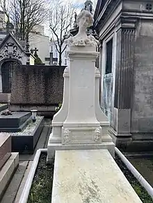 Au mois de mai suivant, la concession d'un terrain au cimetière de Passy fut accordée par la préfecture de la Seine. Ce terrain, qui mesure 2,80 m, est situé dans la partie gauche du cimetière. Le transfert du corps y eut lieu le [2] (division 15). Un an plus tard, le , un service commémoratif fut célébré à Saint-Roch. Puis ses amis se rendirent sur sa tombe où fut découvert le buste sculpté par Denys Puech, surmontant un monument en marbre blanc dû à l'architecte Marcel Dourgnon.