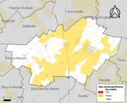 Le retrait-gonflement des sols argileux est susceptible d'engendrer des dommages importants aux bâtiments en cas d’alternance de périodes de sécheresse et de pluie. 47,6 % de la superficie communale est en aléa moyen ou fort (52,8 % au niveau départemental et 48,5 % au niveau national). Sur les 1 050 bâtiments dénombrés sur la commune en 2019, 543 sont en aléa moyen ou fort, soit 52 %, à comparer aux 70 % au niveau départemental et 54 % au niveau national. Une cartographie de l'exposition du territoire national au retrait gonflement des sols argileux est disponible sur le site du BRGM[15],[Carte 1].