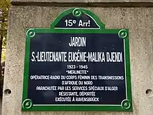 Il a été nommé en en mémoire de la résistante Eugénie Djendi[1], sous-lieutenant de l'armée française, "Morte pour la France " à Ravensbrück en 1945.