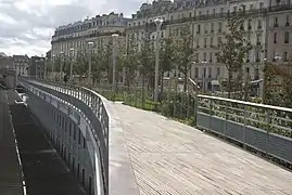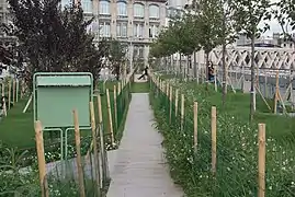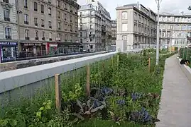 Dès l'origine du projet, avant même choisir la fonction du bâtiment (finalement un hôtel), son toit-terrasse, au même niveau que la rue, est choisi pour accueillir un nouveau jardin, suspendu et surplombant les quais de la gare.