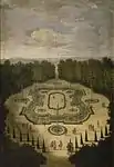 Vue aérienne du jardin, derrière le château de Versailles. | |