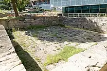 Deux enclos funéraires ont été découverts au nord de la voie d'Italie. Celui situé le plus au nord a été détruit en 1973 pour laisser place au Centre Bourse. Chaque enclos de forme rectangulaire a une surface d’environ 100 m2. Il s'agissait en fait de terrasses destinées à être vues depuis la voie d'Italie[11].