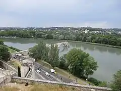 Une importante esplanade offre un point de vue panoramique à 30 m de hauteur (avec table d'orientation) sur Avignon et ses environs, sur le Rhône (en contrebas), et sur le pont d'Avignon (ou pont Saint-Bénézet), l'île de la Barthelasse, les Fort Saint André, tour Philippe-le-Bel et Chartreuse Notre-Dame-du-Val-de-Bénédiction de Villeneuve-lès-Avignon (en face), le tout (selon la clarté de l'horizon) sur fond de vallée du Rhône, mont Ventoux, Châteauneuf-du-Pape, massif du Luberon, massif des Alpilles, Comtat Venaissin, jusqu'aux Dentelles de Montmirail[8]...