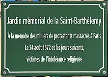 - « Un jardin en plein Paris pour faire mémoire de la Saint-Barthélemy, « crime contre l’humanité » », La Croix, (ISSN 0242-6056, lire en ligne, consulté le )