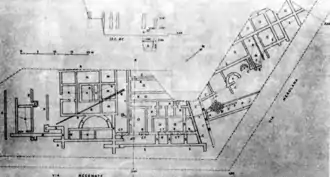 Un dernier ensemble de pièces a été trouvé en 1914 à l'intersection des actuelles via Merulana et via Mecenate lors des travaux de construction du teatro Bracciano, comprenant à la fois des structures de réticulatum et des murs de briques, à quelques mètres de l'Auditorium de Mécène. Une carte des trouvailles[26] illustre une situation archéologique cohérente attribuable, au moins en partie, à la disposition originelle d'un secteur de l'horti.
